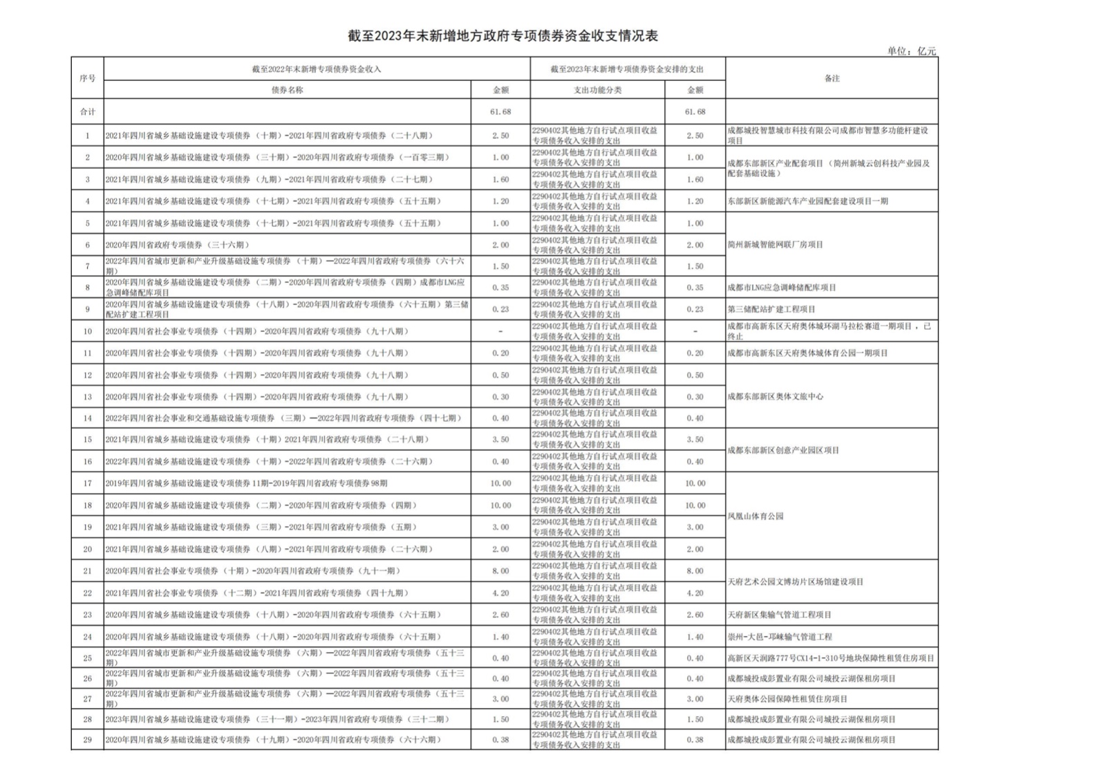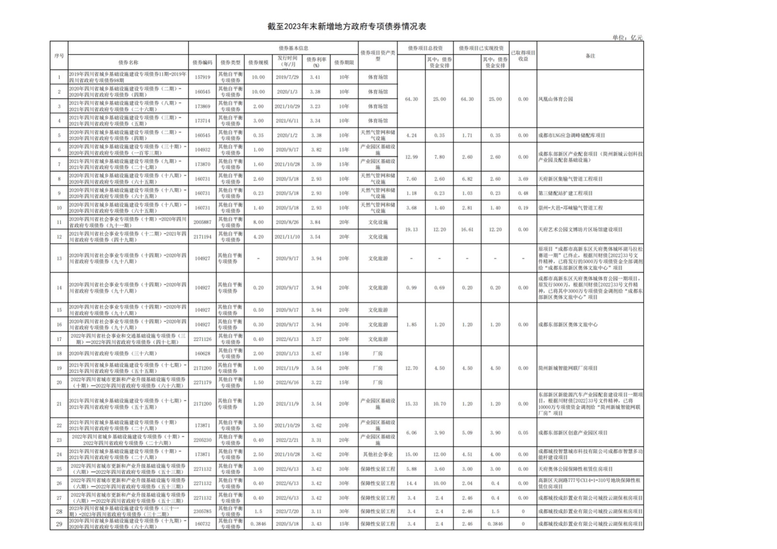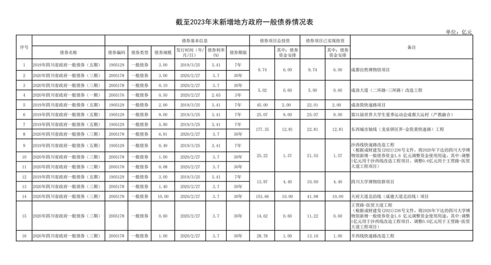 城投集团-(截至2023年底)新增地方政府债券存续期信息公开