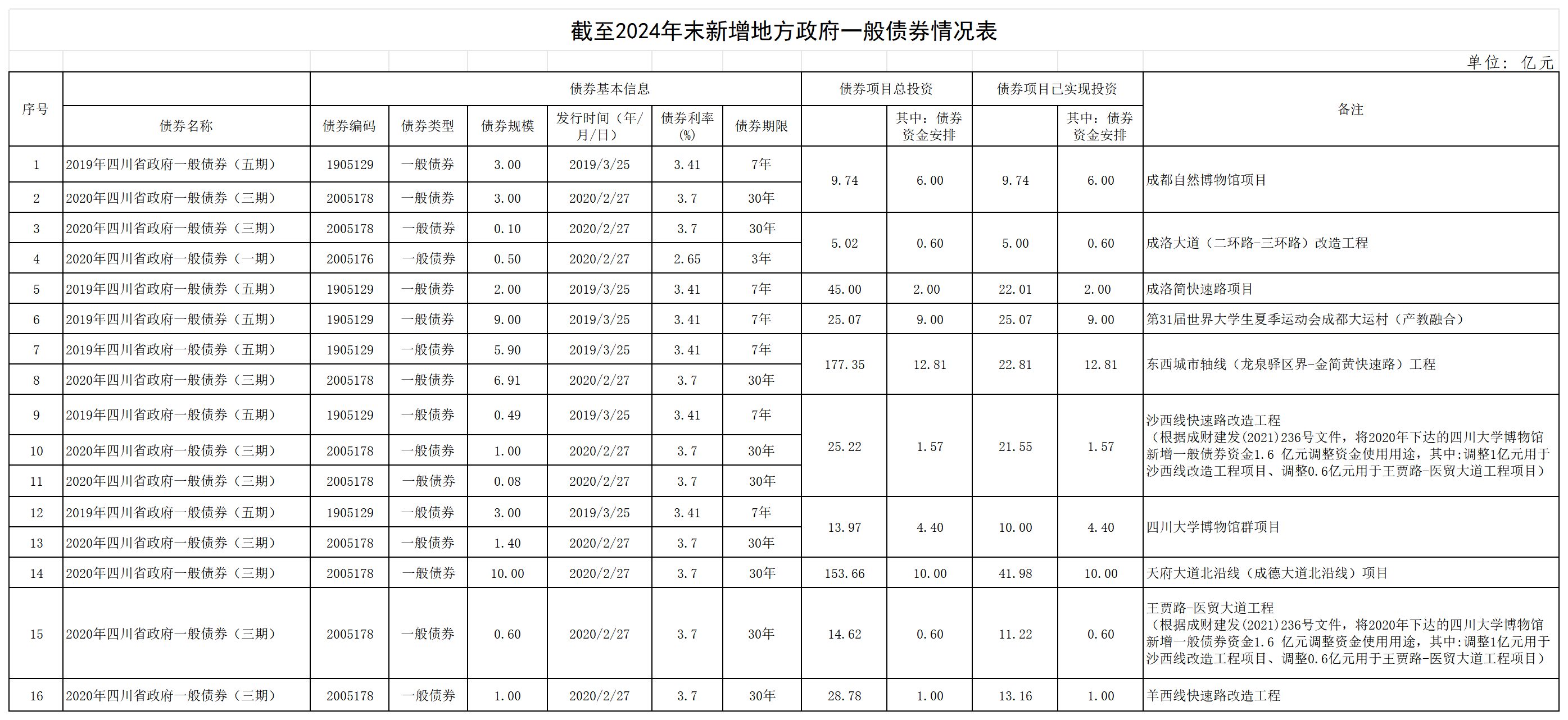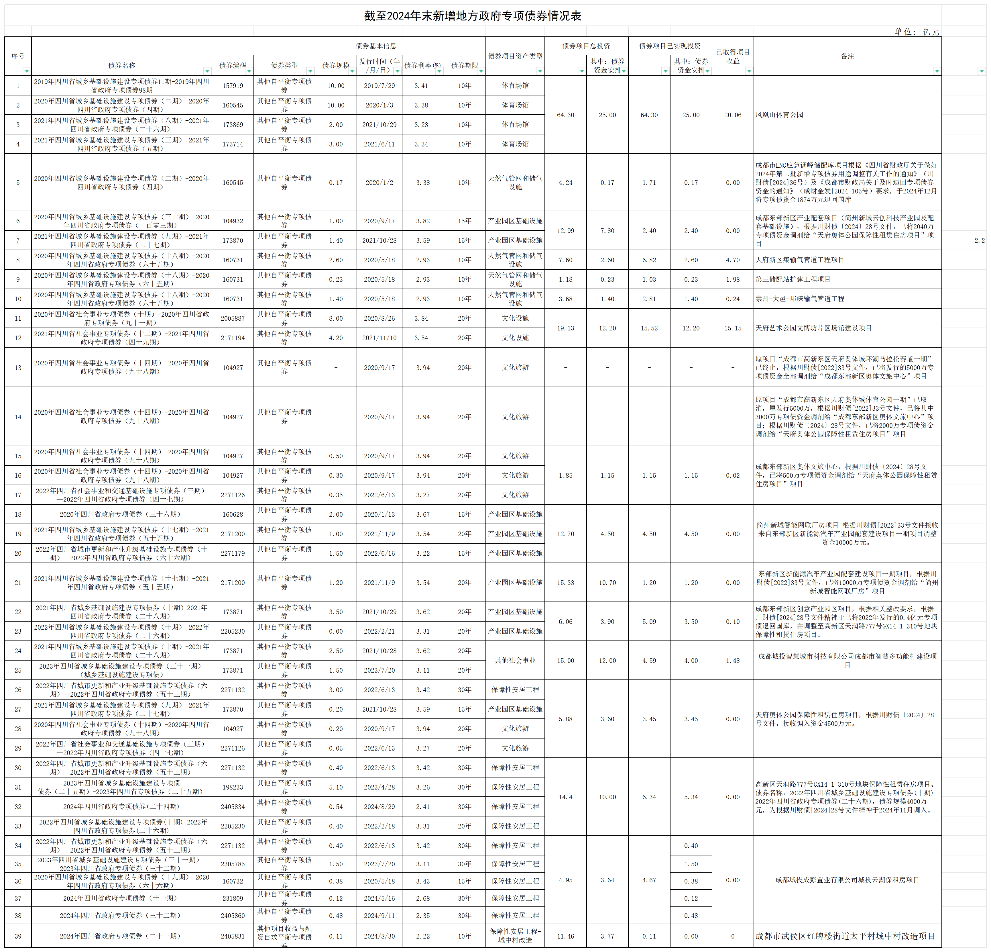 城投集团-(截至2024年底)新增地方政府债券存续期信息公开